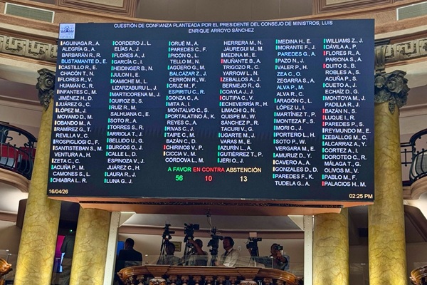 NacionalesPRESIDENTE BALCÁZAR AGRADECE AL CONGRESO POR EL VOTO DE CONFIANZA AL GABINETE...Roice Zeballosabril 17, 2026 by Roice Zeballosabril 17, 202603 El presidente de la república, José María Balcázar, agradeció al Congreso por haber otorgado el...