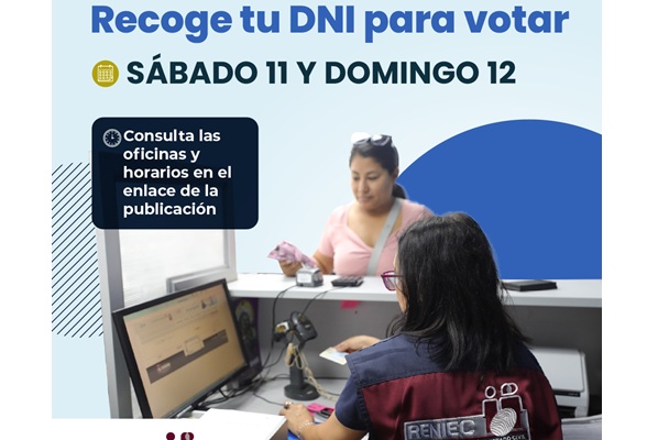 NacionalesELECCIONES 2026: ¡ATENCIÓN! RENIEC ENTREGARÁ DNI HASTA EL DOMINGO, A LAS 16:00...Roice Zeballosabril 10, 2026 by Roice Zeballosabril 10, 202603 El Registro Nacional de Identificación y Estado Civil (Reniec) atenderá en sus principales agencias del...