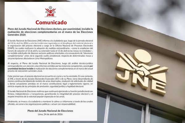 NacionalesELECCIONES 2026: ONPE ESTIMA QUE EL VIERNES SE TENDRÍA RESULTADOS PRESIDENCIALESRoice Zeballosabril 23, 2026 by Roice Zeballosabril 23, 202602 El jefe interino de la Oficina Nacional de Procesos Electorales (ONPE), Bernardo Pachas, estimó que...