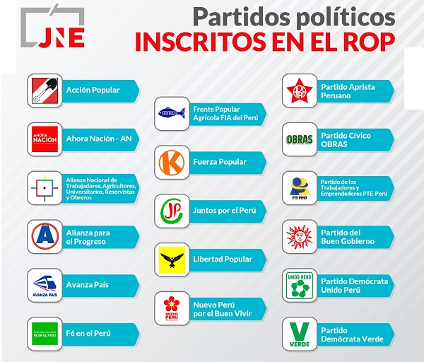 Antes, en julio, consiguieron inscribirse Ahora Nación, el partido político del rector de la Universidad Nacional de Ingeniería (UNI), Alfonso López Chau; Nuevo Perú, de la excongresista Verónika Mendoza; y Obras, del exalcalde Ricardo Belmont. En la lista también figuran los partidos que tienen espacio en el actual Congreso y aquellos de antaño, como el Apra y el PPC.