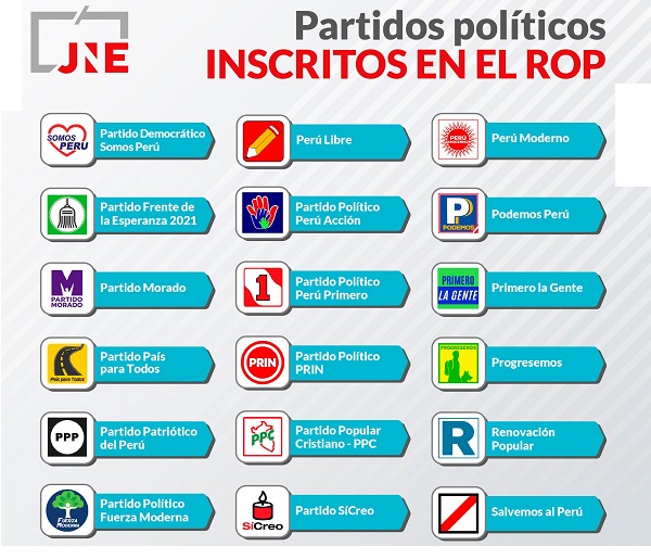 Antes, en julio, consiguieron inscribirse Ahora Nación, el partido político del rector de la Universidad Nacional de Ingeniería (UNI), Alfonso López Chau; Nuevo Perú, de la excongresista Verónika Mendoza; y Obras, del exalcalde Ricardo Belmont. En la lista también figuran los partidos que tienen espacio en el actual Congreso y aquellos de antaño, como el Apra y el PPC.