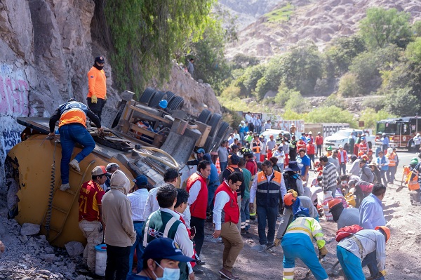 Por disposición de la gobernadora regional de Moquegua, Gilia Gutiérrez Ayala, el equipo de primera respuesta conformado por personal del Proyecto Especial Regional Pasto Grande COER y Recursos Naturales, desplegaron la atención de emergencia para hacer frente ante el derrame de combustible producto de la volcadura y despiste de un camión boliviano la mañana del martes a la altura del puente Tumilaca.