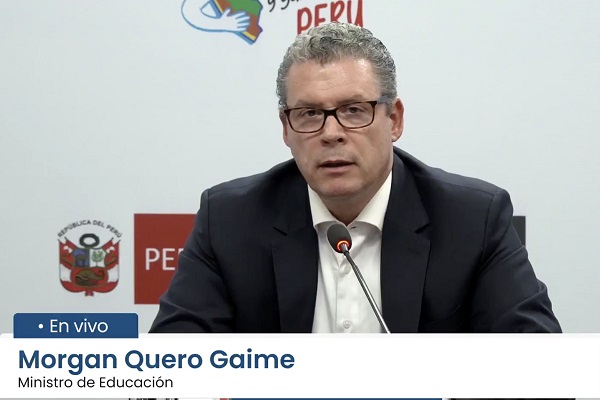 El lunes 17 de marzo se iniciará el año escolar 2025 con el 100% del material educativo distribuido a todos los colegios del Perú a través de las 26 direcciones regionales de educación a nivel nacional, informó el ministro de Educación, Morgan Quero.