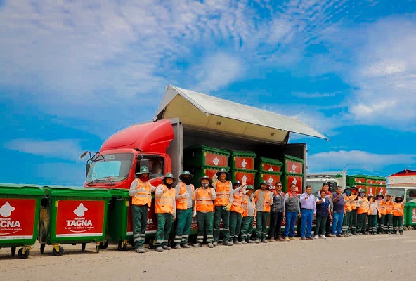 Continuando con el trabajo en el mantenimiento y conservación de nuestro litoral. El Gobierno Regional de Tacna, entregó cerca de medio centenar de contenedores de residuos sólidos para reforzar la limpieza y el cuidado del ecosistema marino-costero en el Balneario Boca del Río.