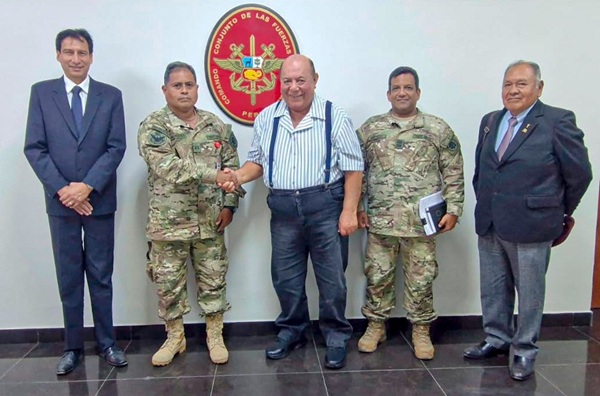 La autoridad regional fue recibida por el jefe de la Oficina de Asuntos Nacionales, el Mayor General FAP Manuel Víctor Palacios Palacios, y el coronel FAP Manuel Moreno, ambos de la institución castrense.