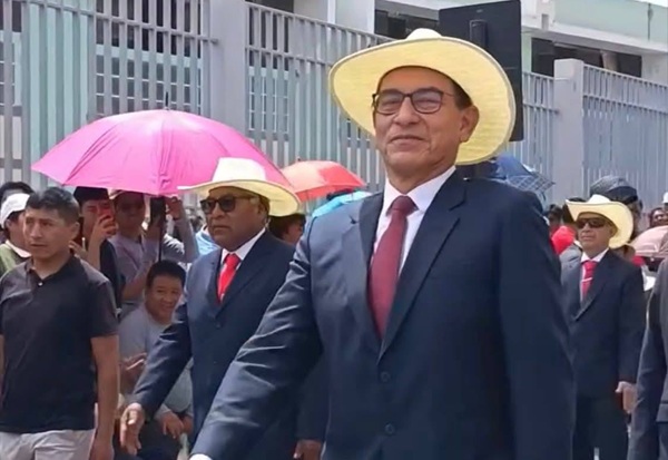 Vizcarra llegó el sábado al Aeropuerto Internacional Coronel FAP Carlos Ciriani Santa Rosa, donde fue recibido por simpatizantes de su agrupación Perú Primero. Aunque se encuentra inhabilitado para ejercer cargos públicos, el exmandatario participó en un acto proselitista y lanzó duras críticas al Gobierno.