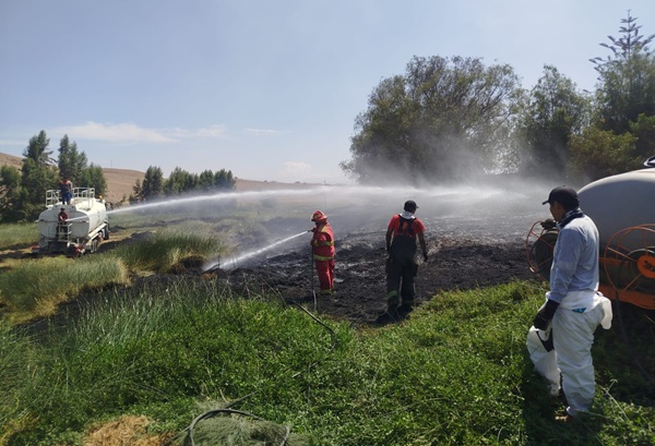El fuego fue sofocado gracias al trabajo conjunto de la cisterna de agua del GORE Tacna, las unidades de bomberos Máquina 110 de Tacna, la Ambulancia 165 de bomberos de Sama, Serenazgo de la jurisdicción, cisterna del gobierno local, personal y logística del COER Tacna.