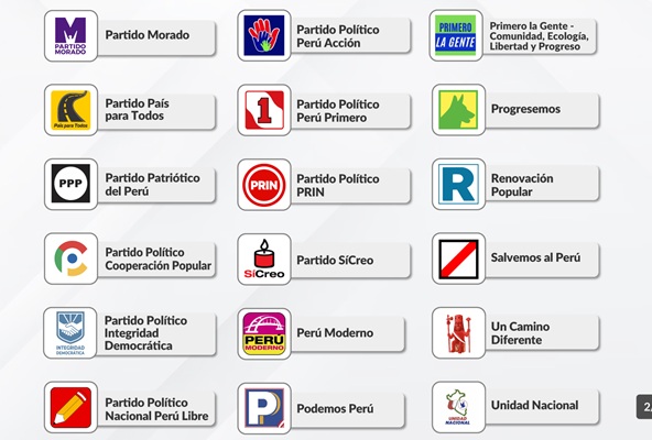 En total son 38 las organizaciones políticas que están habilitadas para solicitar la inscripción de candidaturas de su plancha presidencia, de sus candidatos a senadores, diputados y miembros del Parlamento Andino.