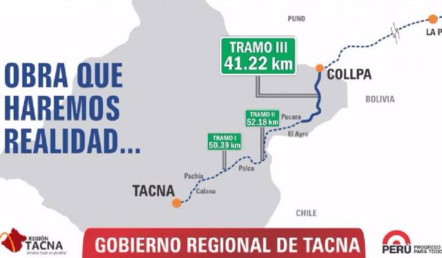 Esta carretera es el sueño de nuestros antepasados, y que en la actualidad de convirtió en pesadilla, pintada de malas gestiones y corrupción, la obra esta paralizada mas de 7 años. Ahora se ha anunciado que en un futuro se ejecutara por la modalidad de obras por impuestos (OXI), según acuerdo que se firmara entre Provías Nacional, el Ministerio de Transportes y Comunicaciones (MTC) y Southern Perú, para culminar el segundo tramo de la carretera Tacna – Collpa, que son los 50 km que faltan asfaltar. Con la bendición de Dios esperamos que así sea.