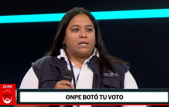 Ante los cuestionamientos sobre la cadena de custodia, la representante de ONPE detalló que en la unidad de transporte viajaban un efectivo de la Policía Nacional del Perú, un fiscalizador del Jurado Nacional de Elecciones (JNE) y un coordinador técnico de mesa de la institución electoral.